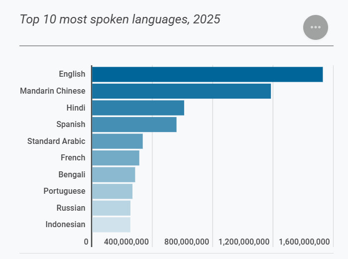 BXH 10 thứ tiếng được sử dụng nhiều nhất thế giới năm 2025 theo Ethnologue (Ảnh: Ethnologue)