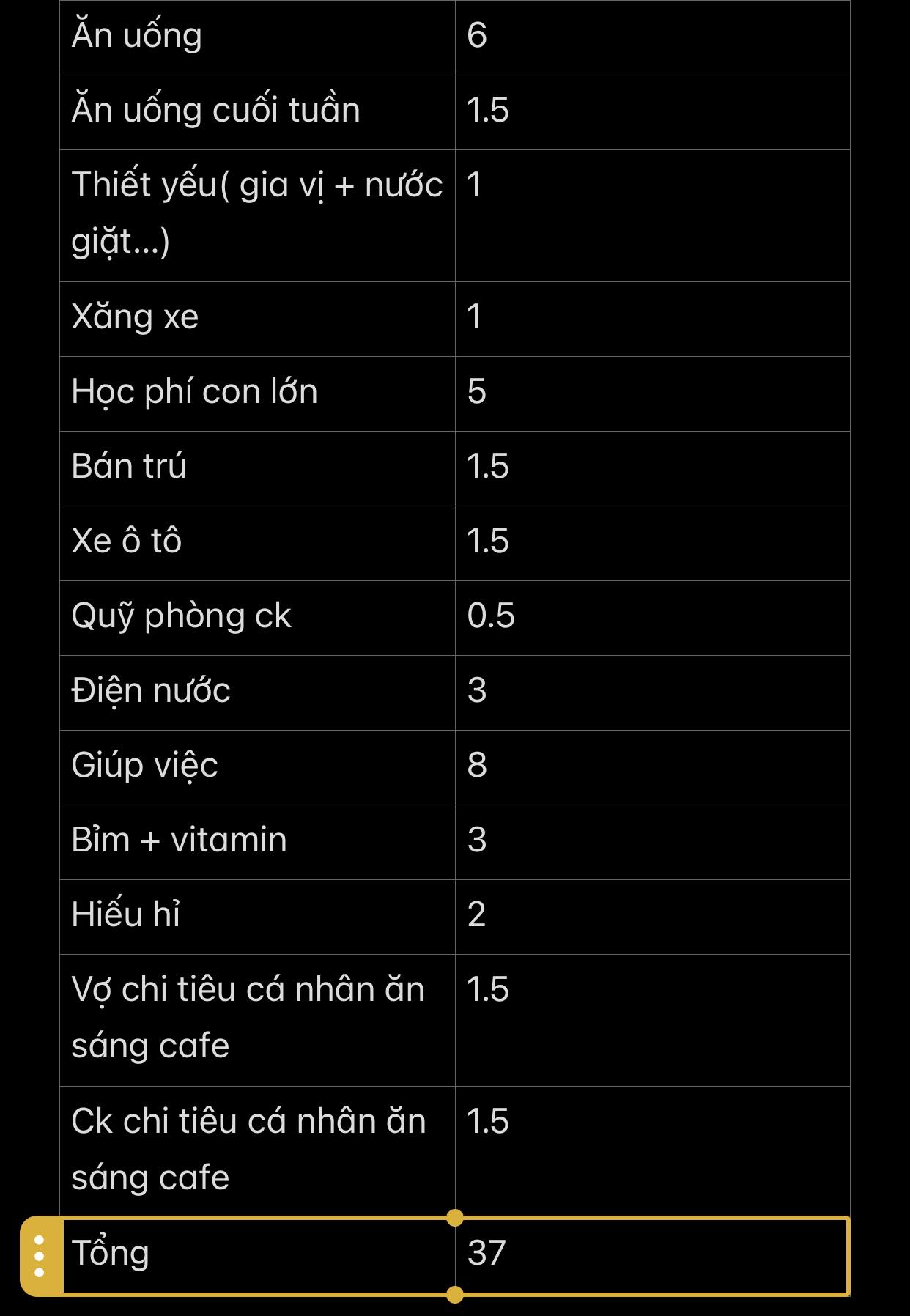 - Chi tiêu cá nhân của vợ: 1, 5 triệu đồng