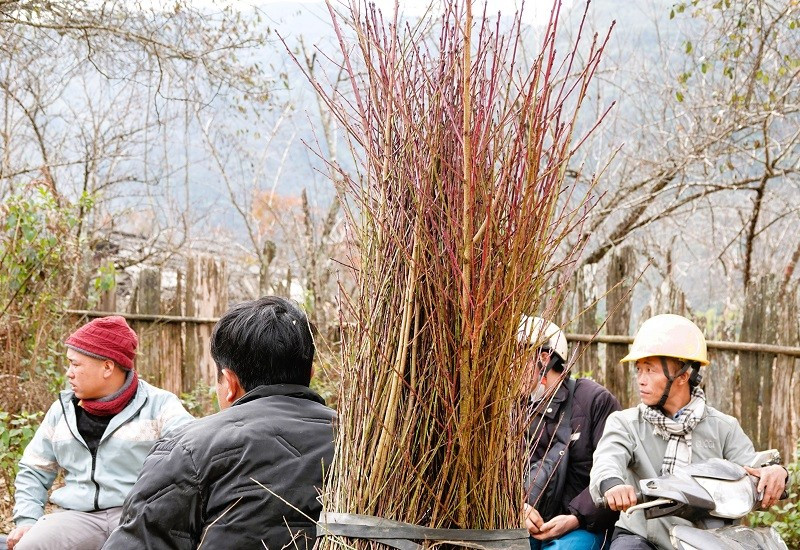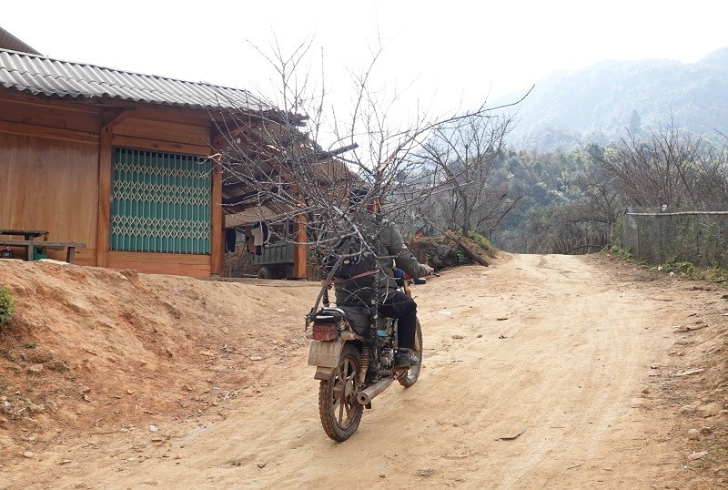 Song song với việc bán cành đào, thời điểm này cũng là lúc người dân tập trung trồng đào để gối vào các vụ sau. Nhờ cây đào, nhiều hộ dân Lùng Cúng đã từng bước thoát nghèo, có điều kiện sửa sang nhà cửa, mua sắm máy móc, phục vụ sản xuất và sinh hoạt. Trong ảnh là người dân đang mang đào giống về trồng.