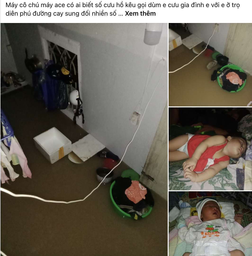 Trong lúc lũ, việc chăm sóc trẻ nhỏ trở nên vô cùng khó khăn: nguồn nước uống, thực phẩm, thuốc men đều rất hạn chế. Việc ôm con, giữ ấm cho trẻ sơ sinh khi ngồi cao chờ cứu hộ, chờ nước rút... là hình ảnh của nhiều gia đình bị ảnh hưởng. Trên MXH, đặc biệt là những group cứu trợ người dân vùng lũ tại Nha Trang, rất nhiều những lời kêu cứu được đăng tải, hi vọng cơ quan chức năng, đội cứu hộ nào đó đang ở khu vực lân cận có thể thấy được và kịp thời ứng cứu.