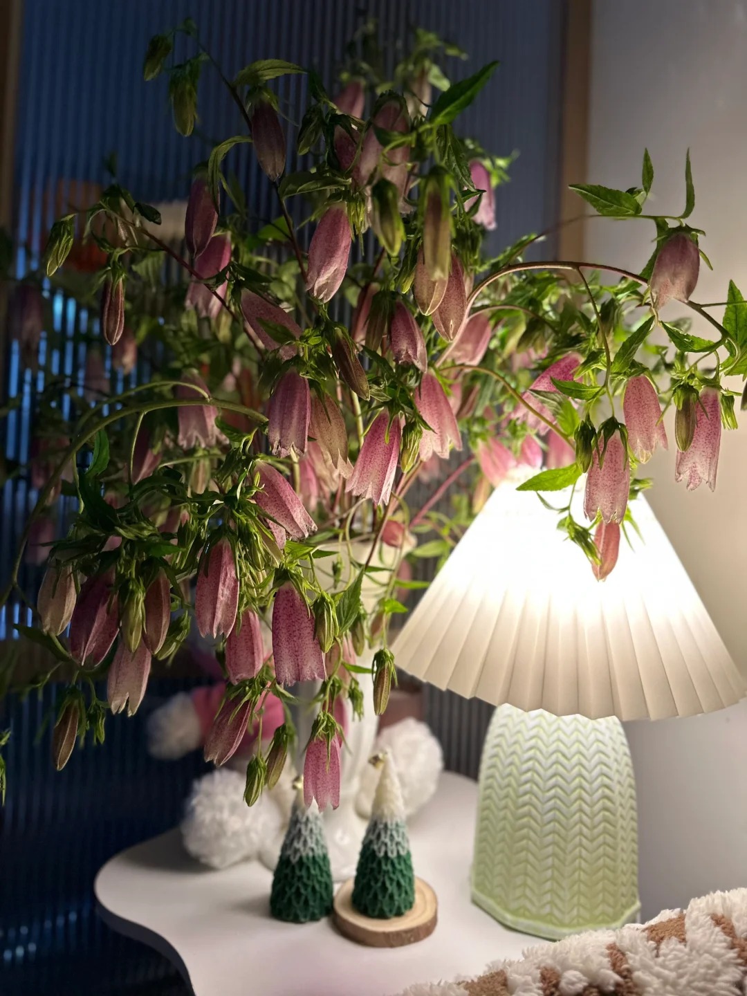 Nếu bạn từng mê cảm giác treo một chiếc chuông gió bên hiên nhà, chỉ cần có làn gió nhẹ thổi qua là lòng cũng dịu lại, thì có lẽ bạn sẽ yêu luôn loài hoa này, những bông hoa tím nhỏ xíu, hình chiếc chuông, đong đưa trên cành như cả một rừng chuông gió thu nhỏ. Người chơi hoa gọi em nó là “hoa chuông đốm” tức những bông hoa chuông có chấm tím li ti bên trong cánh. Vài năm gần đây, loại hoa này bắt đầu xuất hiện trong các tiệm hoa, vườn nhà, trở thành “bé cưng” của hội mê cắm bình, trồng vườn, sống chậm. Hoa vừa đẹp, vừa dễ chăm, lại có thể gắn với không khí Tết, chưng nhà rất lạ và rất… “lifestyle”.