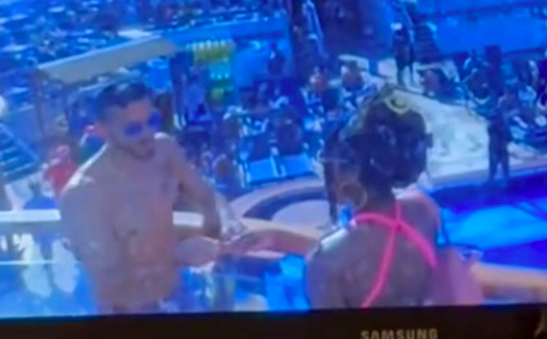 Được biết, cả hai đang trải qua kỳ nghỉ cùng với những người bạn. Vào lúc đó, đối phương nói rằng sẽ đi lên phía boong tàu kiếm một ít thức ăn. Khi ở lại thuyền, một người bạn của họ vô tư lướt qua đoạn phim của CCTV có sẵn trên tivi bên trong cabin. Đây cũng chính là khoảnh khắc cô bắt gặp người mình tin tưởng bấy lâu đang làm điều mờ ám.