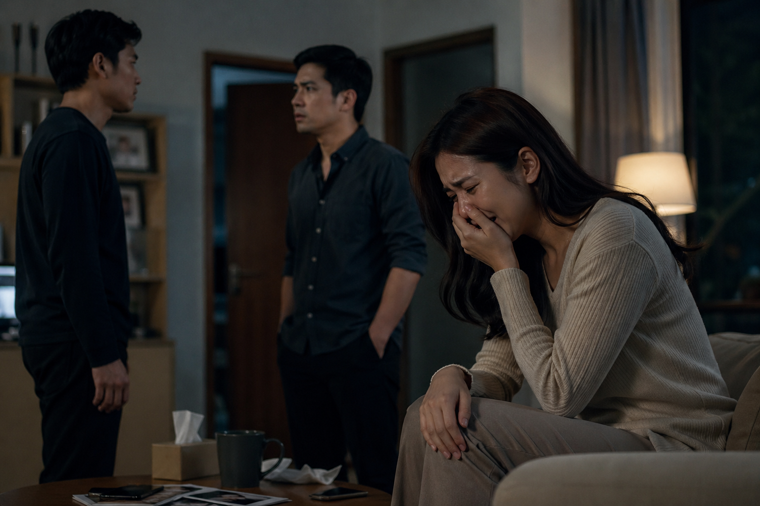 Sau đó, anh gọi người bạn kia đến. Ba người chúng tôi đứng đối diện nhau trong căn phòng quen thuộc, nhưng không khí đặc quánh như bóp nghẹt từng nhịp thở. Không một tiếng quát, chỉ có sự thất vọng hiện rõ trong ánh mắt chồng tôi khiến tôi không dám ngẩng đầu.