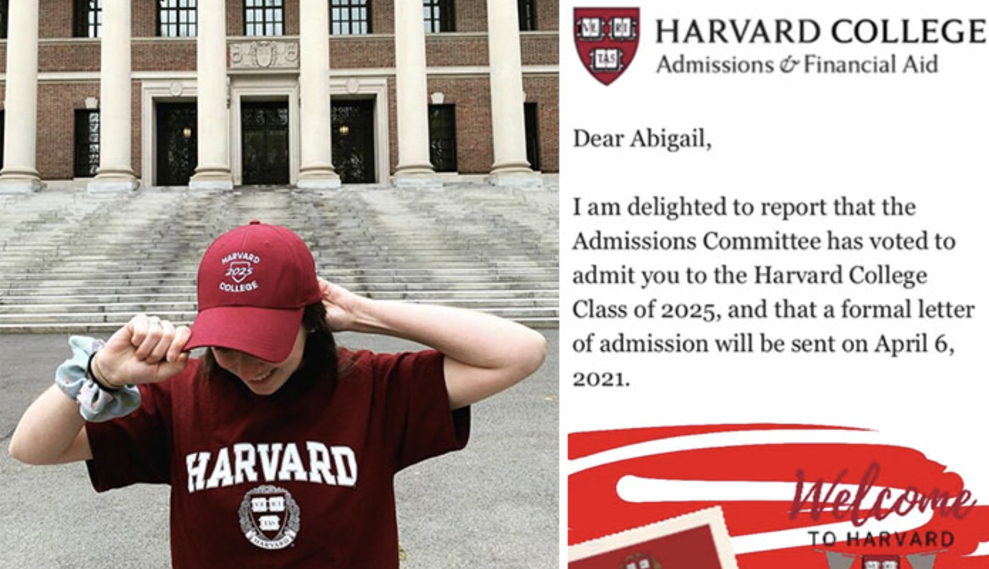 Câu chuyện chân thành ấy của Abigail không chỉ chạm đến trái tim cộng đồng mạng mà còn đưa Abigail thẳng vào Harvard. Được biết vào thời điểm đó, chỉ 1.968/57.435 thí sinh được chọn vào Harvard.
