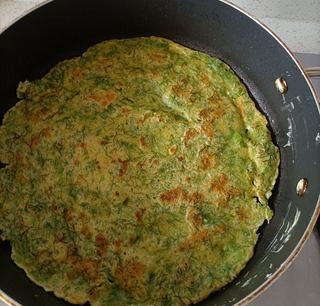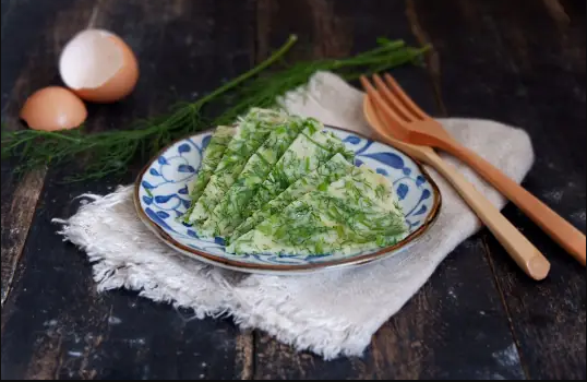 Món ăn này khéo léo tận dụng vitamin D trong trứng để thúc đẩy sự hấp thụ canxi, và bột tôm thêm vào hỗn hợp bột càng làm tăng thêm hàm lượng canxi. Bánh kếp mới chiên giòn ở mép và mềm ở giữa, với vị thơm nồng của thì là hòa quyện hoàn hảo với hương thơm của trứng - một sự kết hợp bữa sáng thực sự tuyệt vời vào mùa xuân.