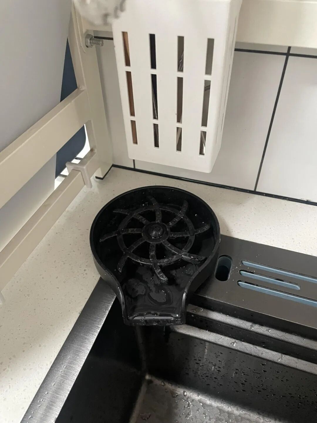 Trên thực tế, nhiều phụ kiện khá cồng kềnh và chiếm diện tích bồn rửa. Khi muốn rửa nồi lớn, phải tháo toàn bộ phụ kiện ra, khá bất tiện.
