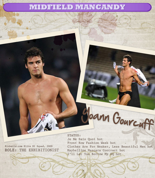 Yoann Gourcuff có 2 năm thi đấu trong màu áo AC Milan nhưng không gây được nhiều ấn tượng. Đến năm 2008 thì tiền vệ này quyết định chuyển sang Bordeaux và ở đây Gorcuff đã tỏa sáng và trở thành chủ nhân danh hiệu Cầu thủ xuất sắc nhất Ligue 1 mùa giải 2008-2009. Sở hữu một vẻ đẹp dịu dàng, lãng mạn rất Pháp, Gourcuff được bầu chọn là một trong những cầu thủ sexy nhất ở Ligue 1.