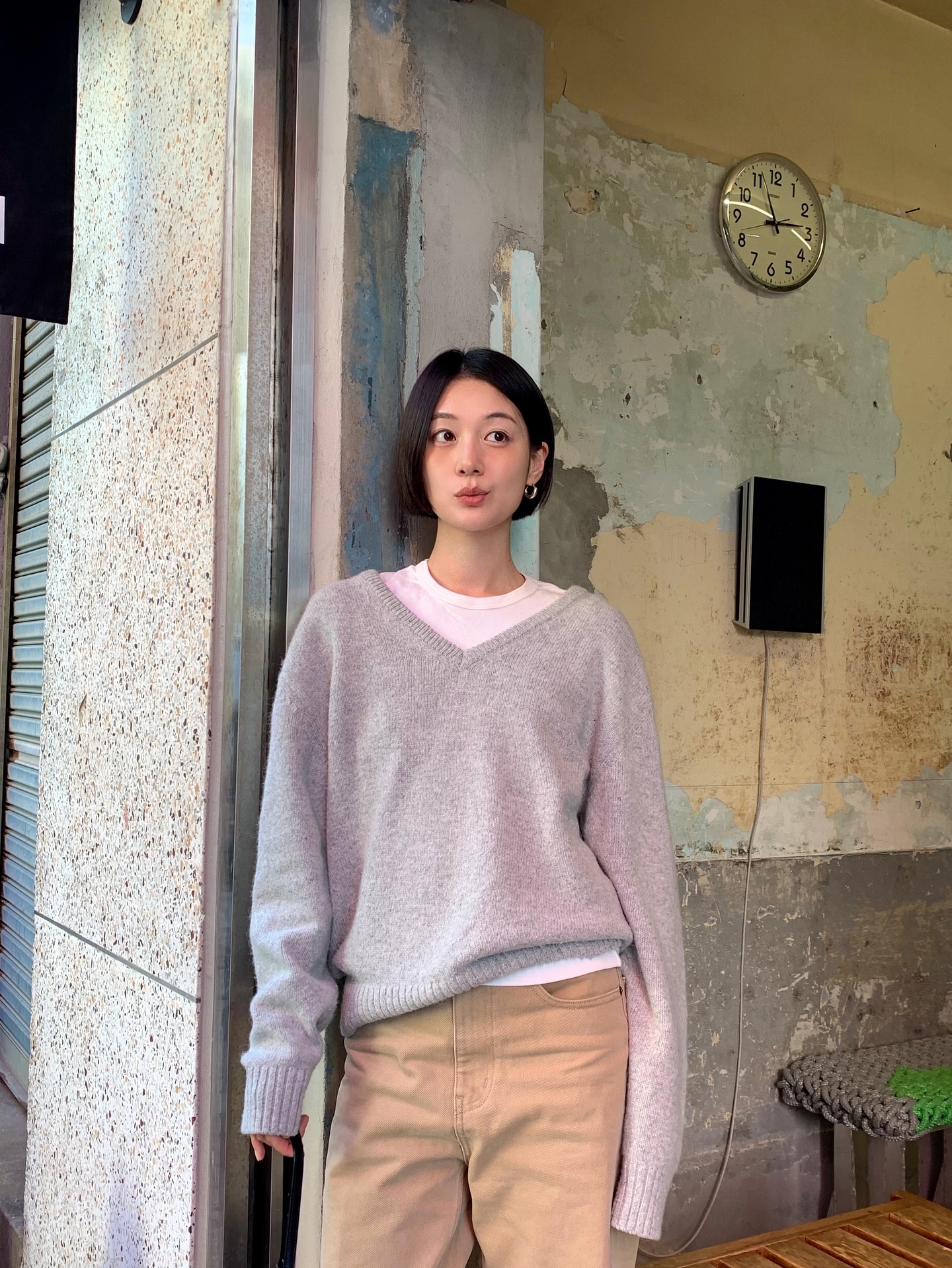 Áo len cổ tim cũng cực kỳ dễ phối đồ. Bạn có thể mặc riêng để tạo vẻ ngoài nữ tính, nhẹ nhàng hoặc layer cùng sơ mi cổ bẻ để tăng chiều sâu cho outfit. Khi chọn áo, nên ưu tiên dáng vừa vặn, không quá bó nhưng cũng không quá rộng để tránh làm lộ nhược điểm cơ thể. Chất len mềm, rũ nhẹ sẽ giúp tổng thể trông gọn gàng và tinh tế hơn.
