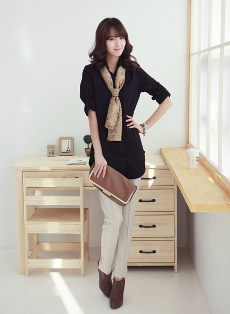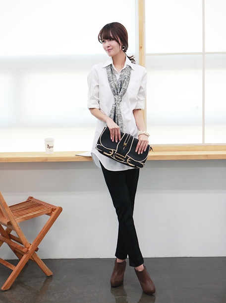 Bắt đầu với những chiếc sơ mi đen và trắng đơn giản. Chúng có thể hơi cứng nhắc một chút trong ngày thường. Nhưng nếu bạn mặc chúng một cách thật thoải mái, quên đi những thân áo gọn gàng và làm điệu với những chiếc khăn, bạn sẽ cảm có được phong cách khác hẳn với cùng một chiếc sơ mi dài của mình.