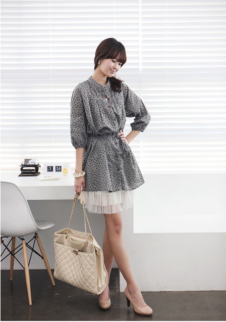 Áo sơ mi dài thêm đai lưng tạo dáng người nhỏ nhắn