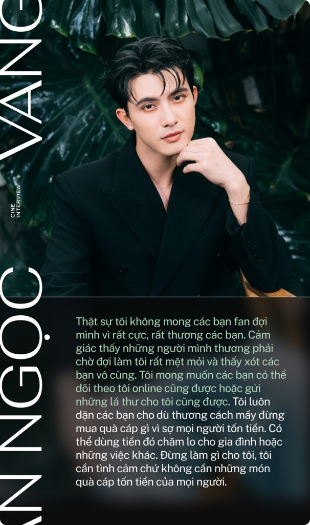 Có những thời điểm tôi chọn nhân vật vì tôi muốn học hỏi từ nhân vật đó. Phan Minh là một cột mốc để tôi theo đuổi hình tượng của nhân vật. Trước đây, tôi không giống Phan Minh. Tôi bị ADSD nhẹ, không ngồi yên được, tăng động và làm đủ thứ trò. Dạo gần đây, tôi học được từ nhân vật đó nhiều và muốn thay đổi hình tượng của mình. Tôi thấy đã tới thời điểm phải thay đổi từ một Trần Ngọc Vàng có phần lấc cấc, đóng những vai con nít, học đường sang những hình tượng trưởng thành, chững chạc và điềm đạm hơn. Phan Minh là một nhân vật như vậy nên tôi không thể bỏ lỡ và bắt trọn cơ hội này để nhìn vào và sống cùng nó. Tôi may mắn hơn rất nhiều khi những gì mình thể hiện và mang lên màn ảnh được khán giả đón nhận và yêu thương.