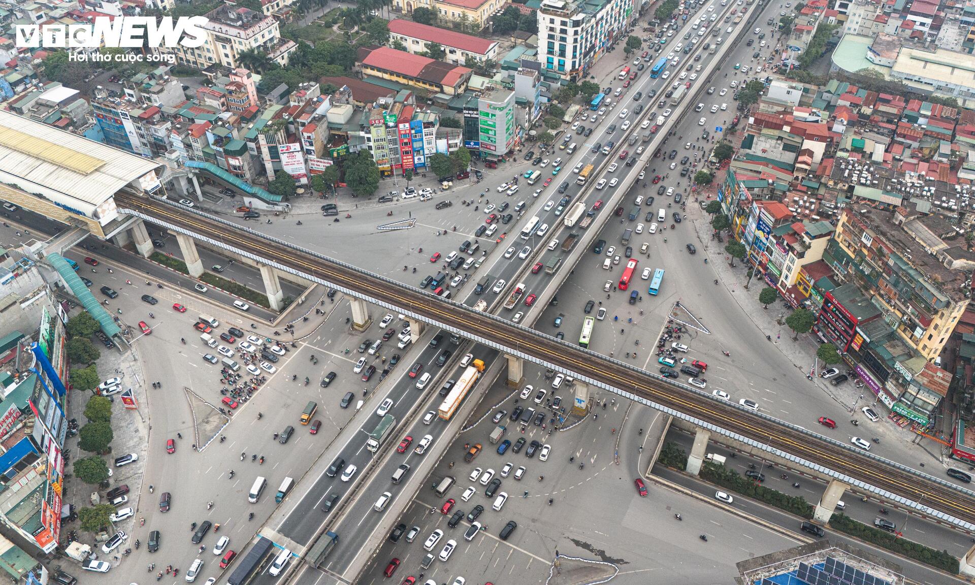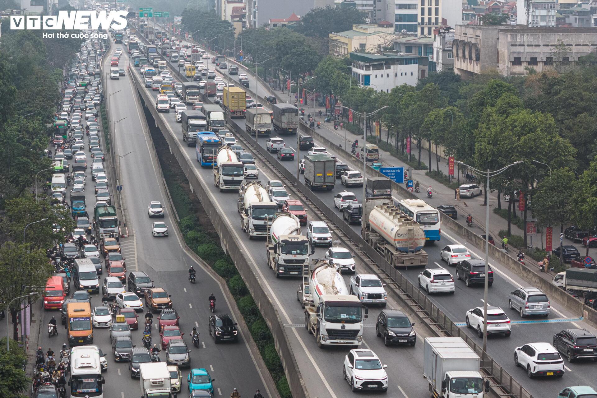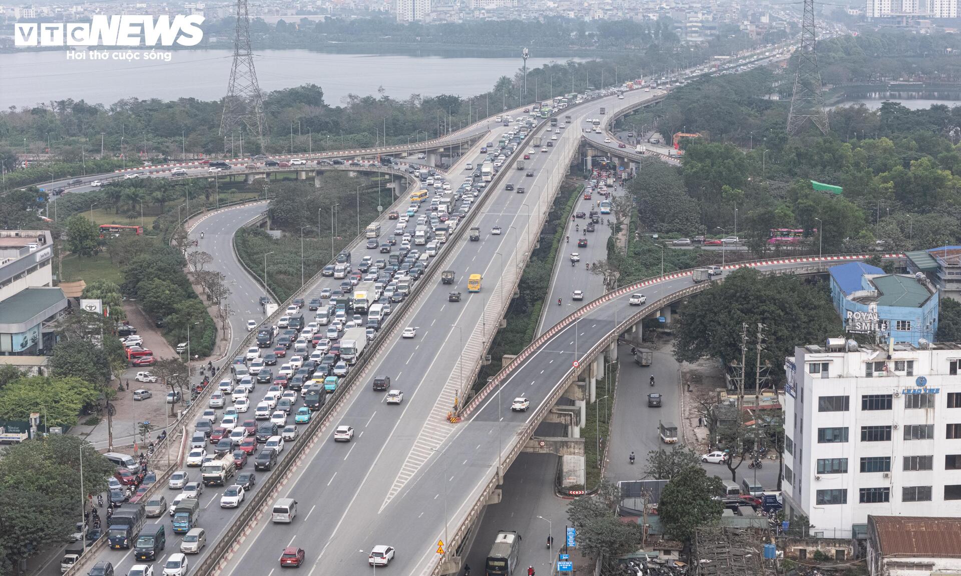 Khoảng 15h, tại khu vực đường vành đai 3 trên cao, các phương tiện xếp hàng dài qua nút giao Nguyễn Trãi - Khuất Duy Tiến.