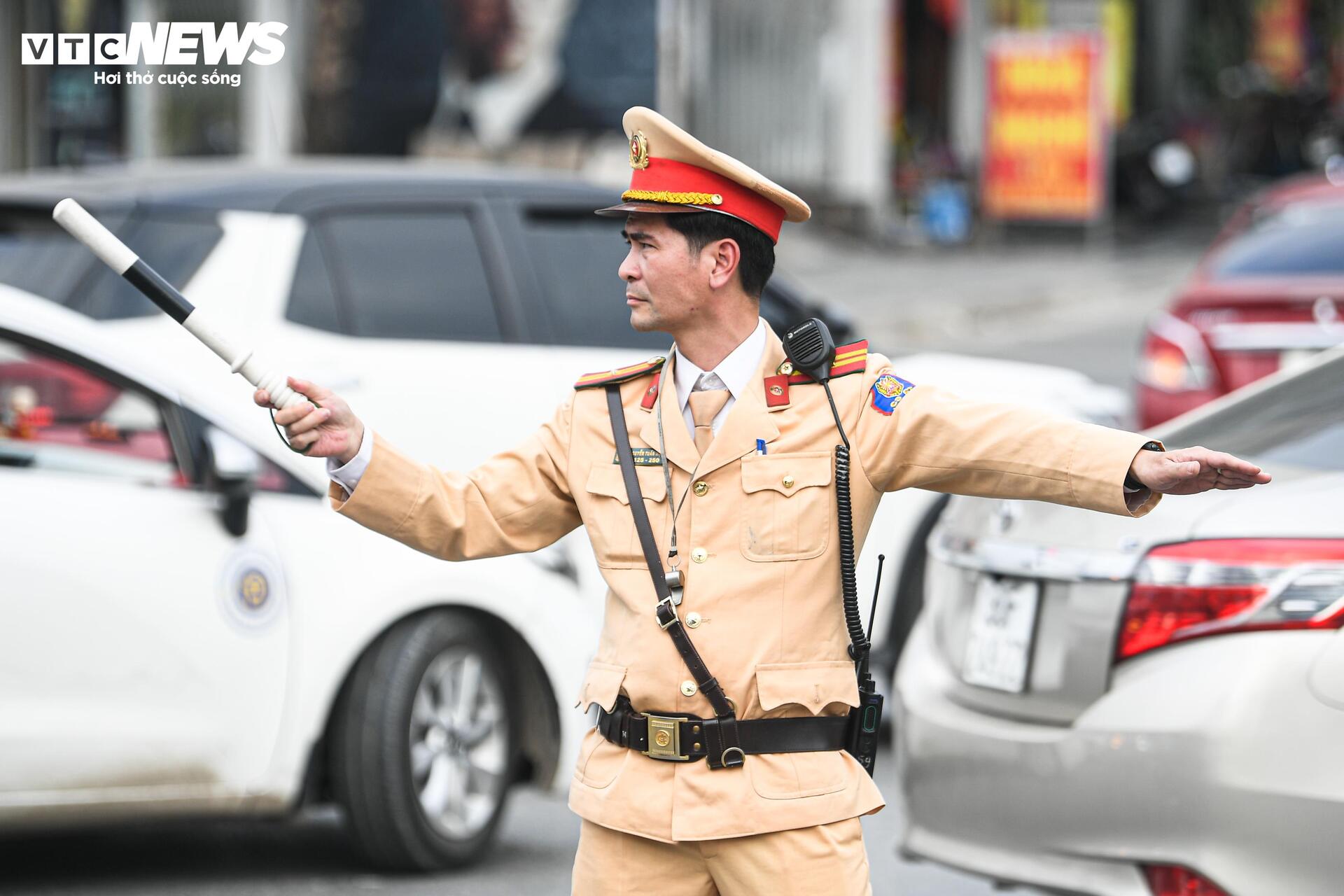 Lực lượng cảnh sát giao thông được tăng cường tại nhiều nút trọng điểm để điều tiết, hạn chế xung đột giữa các hướng rẽ.
