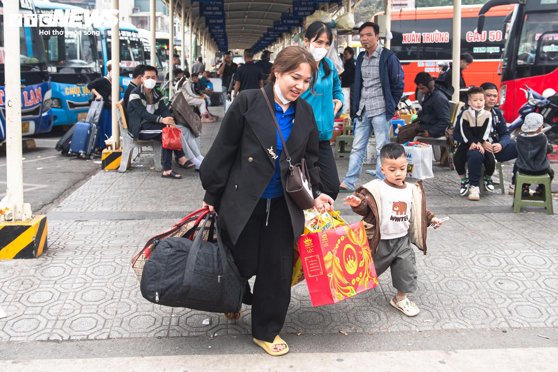 Hành khách tay xách vali, túi quà Tết, hối hả tìm xe về quê.
