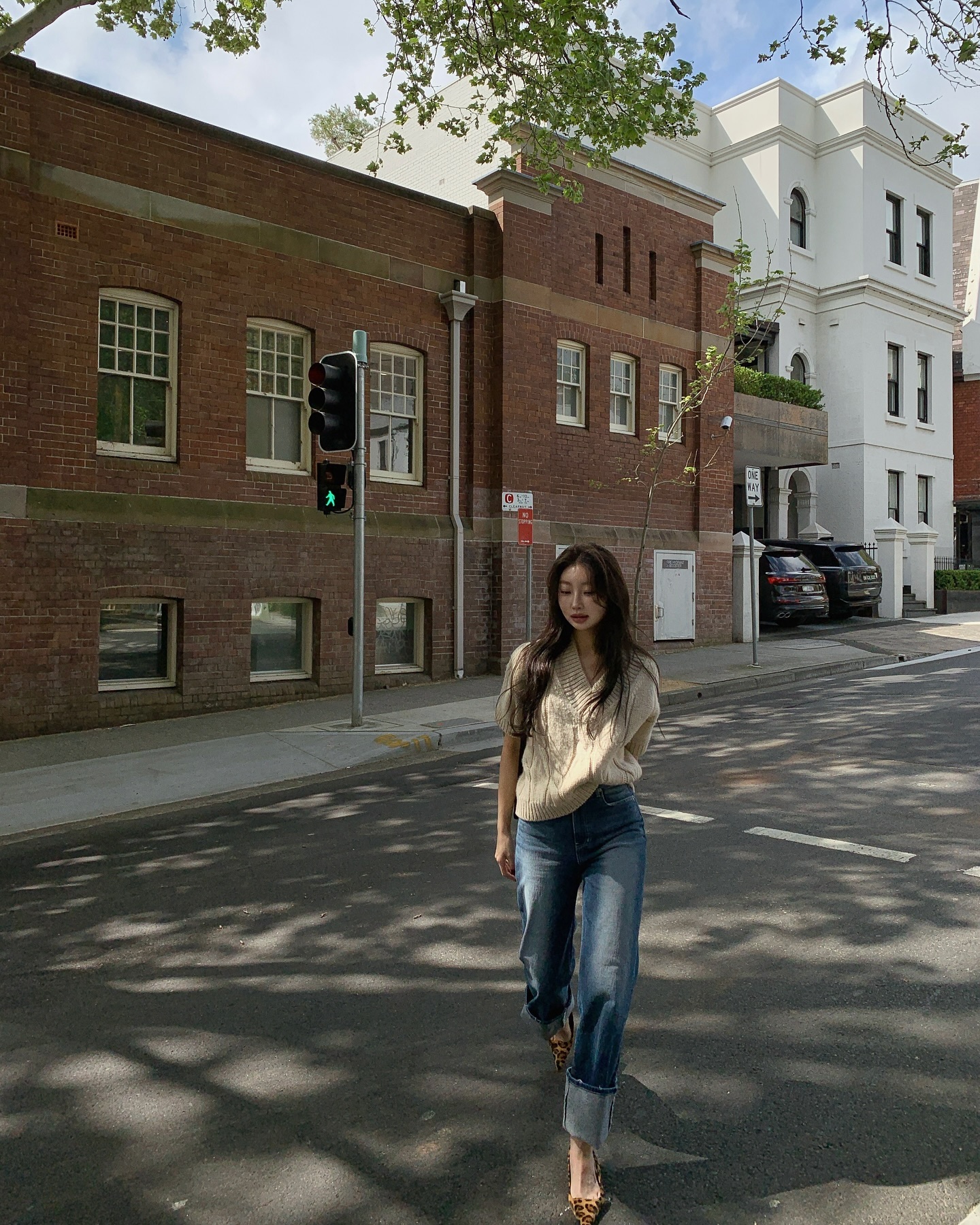 Áo len và quần jeans luôn là lựa chọn hoàn hảo khi thời tiết trở lạnh.