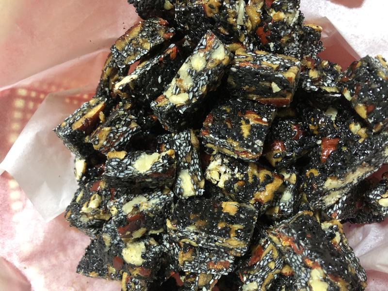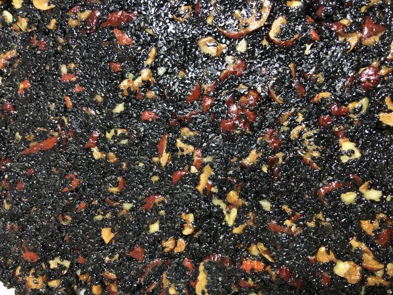Thành phẩm món kẹo mè đen, táo đỏ và hạt óc chó