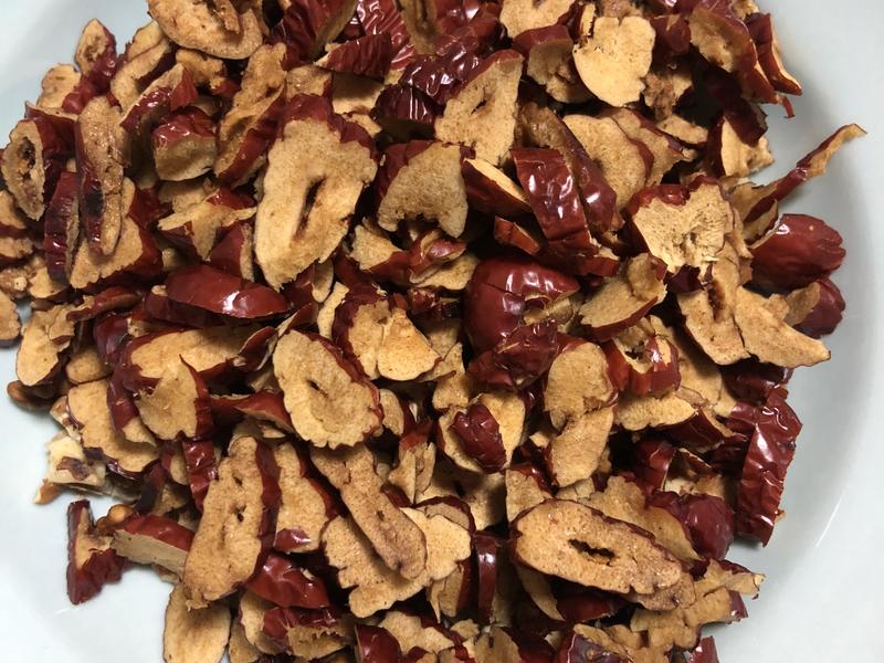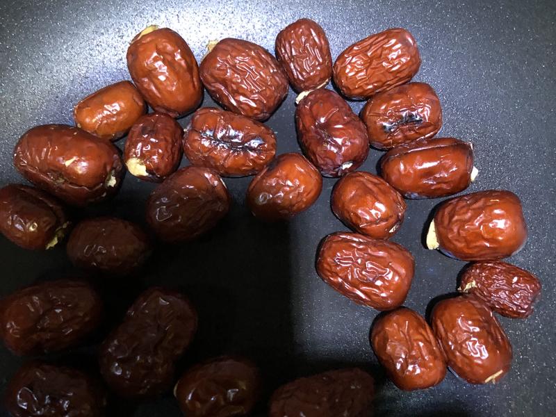 Bước 1: Rửa sạch tất cả nguyên liệu trước. Hạt mè đen, óc chó (hoặc các loại hạt khác thêm vào) nên được rang chín để có hương thơm hơn. Bạn có thể dùng nồi chiên không dầu hoặc lò nướng để làm chín các loại hạt. Mạch nha bạn cho vào bát rồi thêm 30g nước, hòa đều. Táo đỏ sau khi rửa sạch thì cho vào chảo rang để loại bỏ độ ẩm. Sau đó cắt thành từng miếng nhỏ.