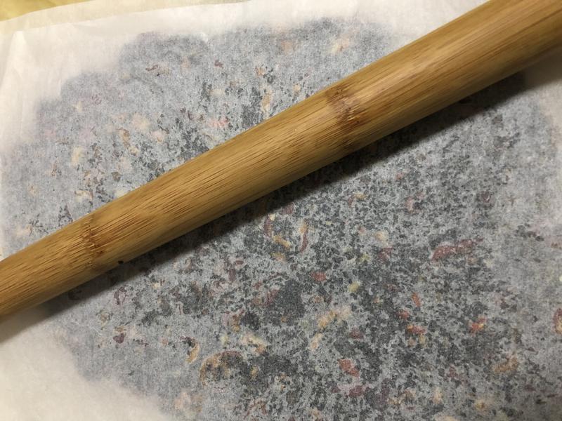 Bước 3: Lúc này, đổ mè đen vào, vừa đổ vừa đảo đều. Sau đó cho táo đỏ, kỷ tử và hạt óc chó vào, tiếp tục đảo đều tất cả nguyên liệu trên mức lửa nhỏ để phần siro phủ đều nguyên liệu và bám vào nguyên liệu, rồi tắt bếp. Lót giấy nến lên khay, đổ hỗn hợp vừa nấu xong vào và trải một lớp giấy nên khác lên trên rồi dùng thanh cán bột dàn đều khi còn nóng. Sau khi nguội, úp ngược khay xuống và cắt thành từng miếng nhỏ. Bạn có thể cho tất cả vào lọ hoặc đóng gói riêng lẻ và thưởng thức bất cứ khi nào bạn muốn.