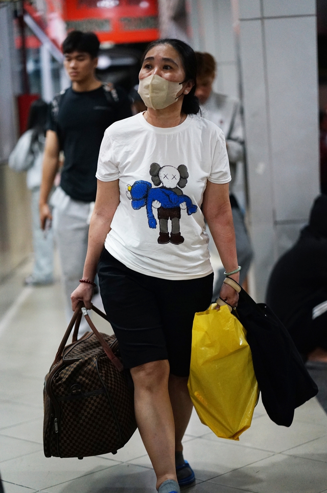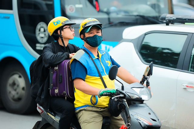 Người dân mang theo lỉnh kỉnh đồ đạc, từ thùng xốp đến vali hành lý, chuẩn bị rời thành phố để trở về quê sau những ngày làm việc, học tập xa nhà.