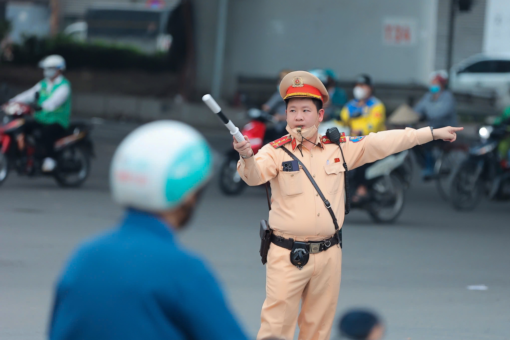 Lực lượng chức năng tăng cường phân luồng, giảm áp lực giao thông trong dịp nghỉ lễ Giỗ Tổ Hùng Vương.