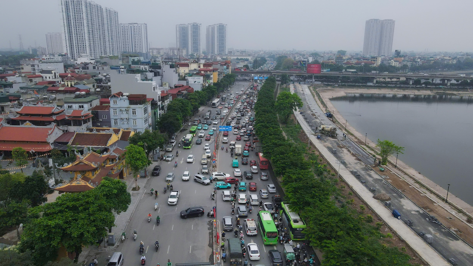 Tại trục đường Giải Phóng, đặc biệt khu vực quanh Bến xe Giáp Bát và Bến xe Nước Ngầm, dòng phương tiện dồn về mỗi lúc một đông. Ô tô, xe máy xếp hàng dài, nhiều thời điểm di chuyển rất chậm, có đoạn gần như ùn ứ cục bộ.