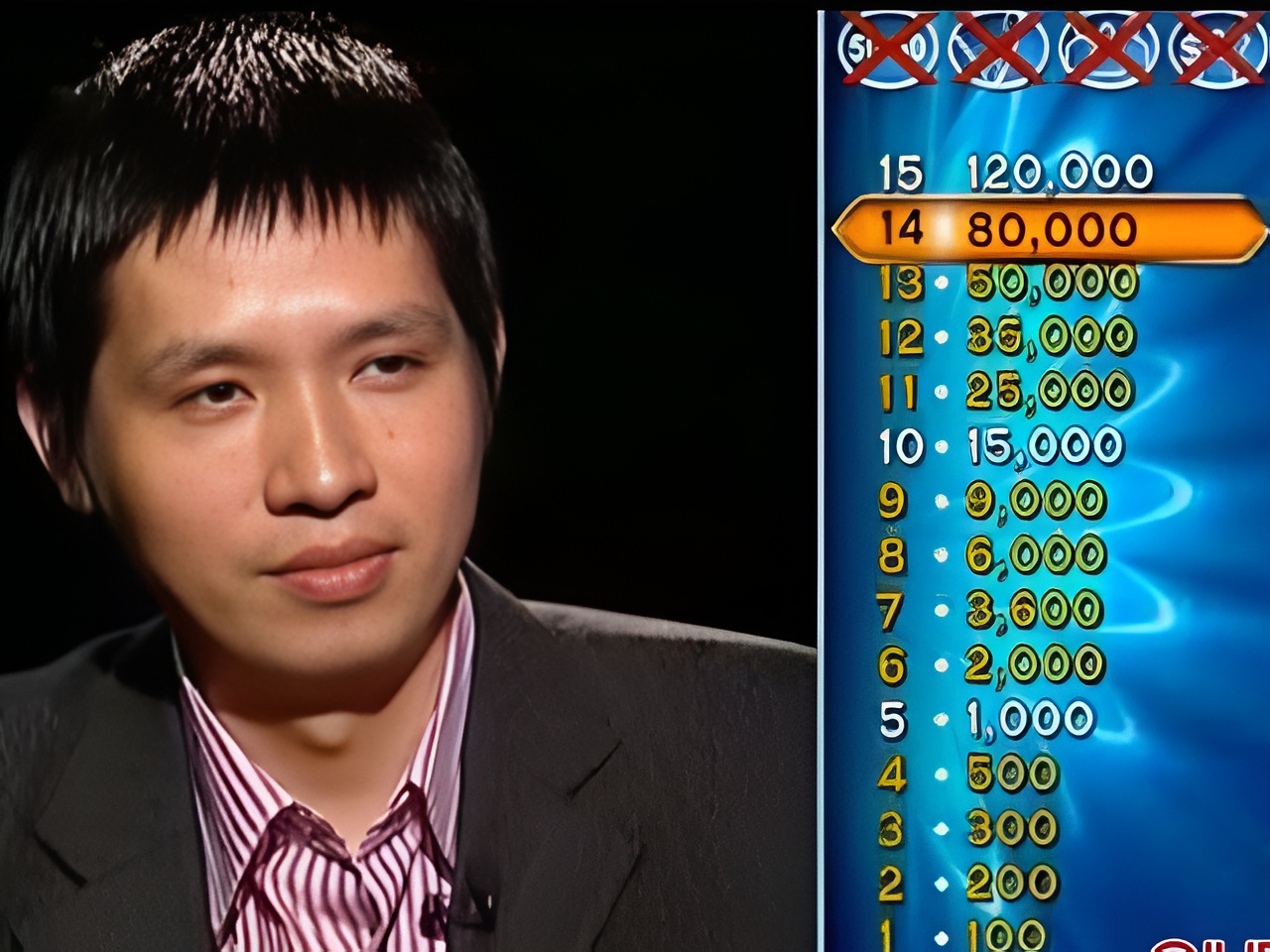 Sau khi suy luận, anh loại phương án C và phân vân giữa A và B. Dù linh cảm ban đầu nghiêng về B. Tiểu thuyết thứ bảy, sự không chắc chắn khiến anh quyết định dừng cuộc chơi và nhận 80 triệu đồng. Đáng tiếc, khi được hỏi lại, anh lựa chọn B - đáp án chính xác, vì vậy anh đã bỏ lỡ cơ hội trở thành “triệu phú” đầu tiên của chương trình.
