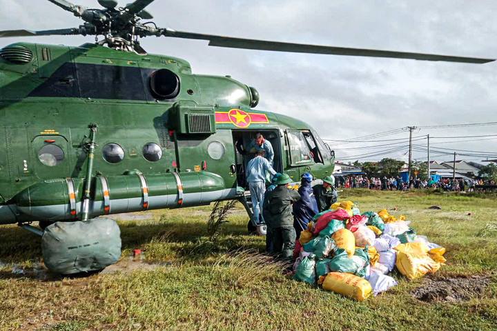 Sáng 23/11, trực thăng Mi-17 của Trung đoàn 930 cất cánh mang hàng tấn hàng cứu trợ, tiếp tế khẩn cấp cho người dân bị cô lập do mưa lũ.