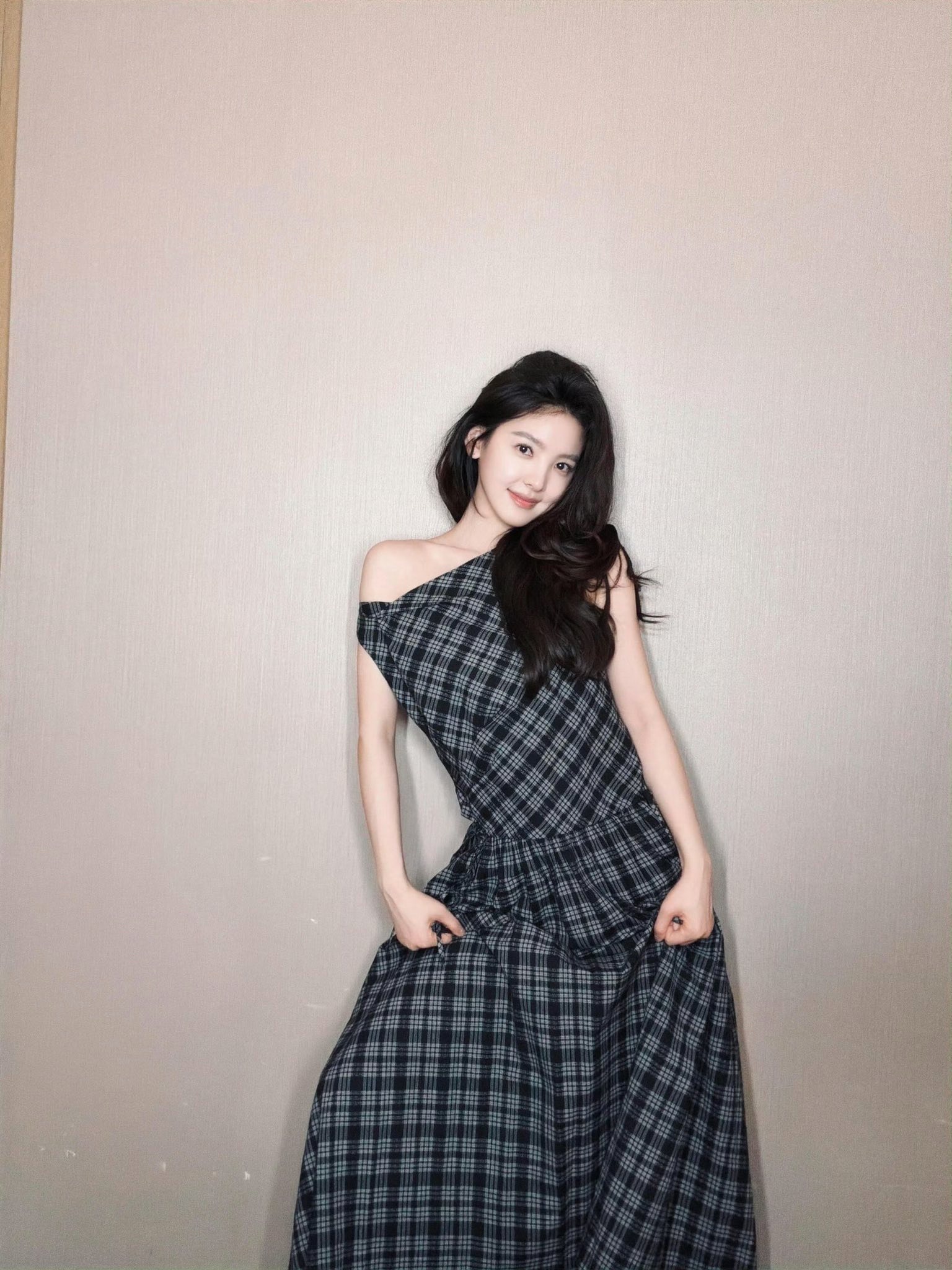 Chương Nhược Nam gợi ý cho chị em một mẫu váy dạo phố vừa xinh vừa dễ mặc, đó là thiết kế váy dài với chi tiết lệch vai. Kiểu dáng này tạo điểm nhấn nhẹ nhàng nhưng đủ thu hút, không quá cầu kỳ vẫn nổi bật. Mùa hè năm nay, các thiết kế lệch vai từ áo đến váy tiếp tục được ưa chuộng. Chị em có thể yên tâm diện vì vừa hợp trend, vừa giúp tôn nét nữ tính cho vẻ ngoài.