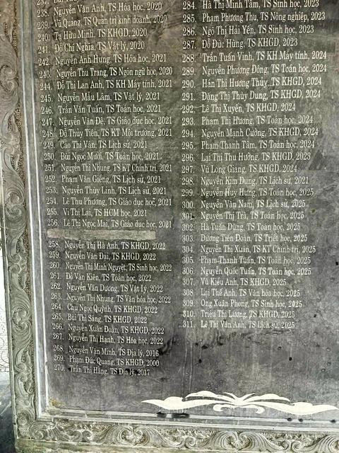 Được biết từ năm 1997, Trường Đại học Sư phạm 2 vinh danh giảng viên đạt học vị tiến sĩ bằng cách khắc tên trên các tấm bia, đặt trong khuôn viên. Giảng viên vừa bị đục bỏ tên khỏi bia tiến sĩ mới đây được trường vinh danh đầu năm 2023.