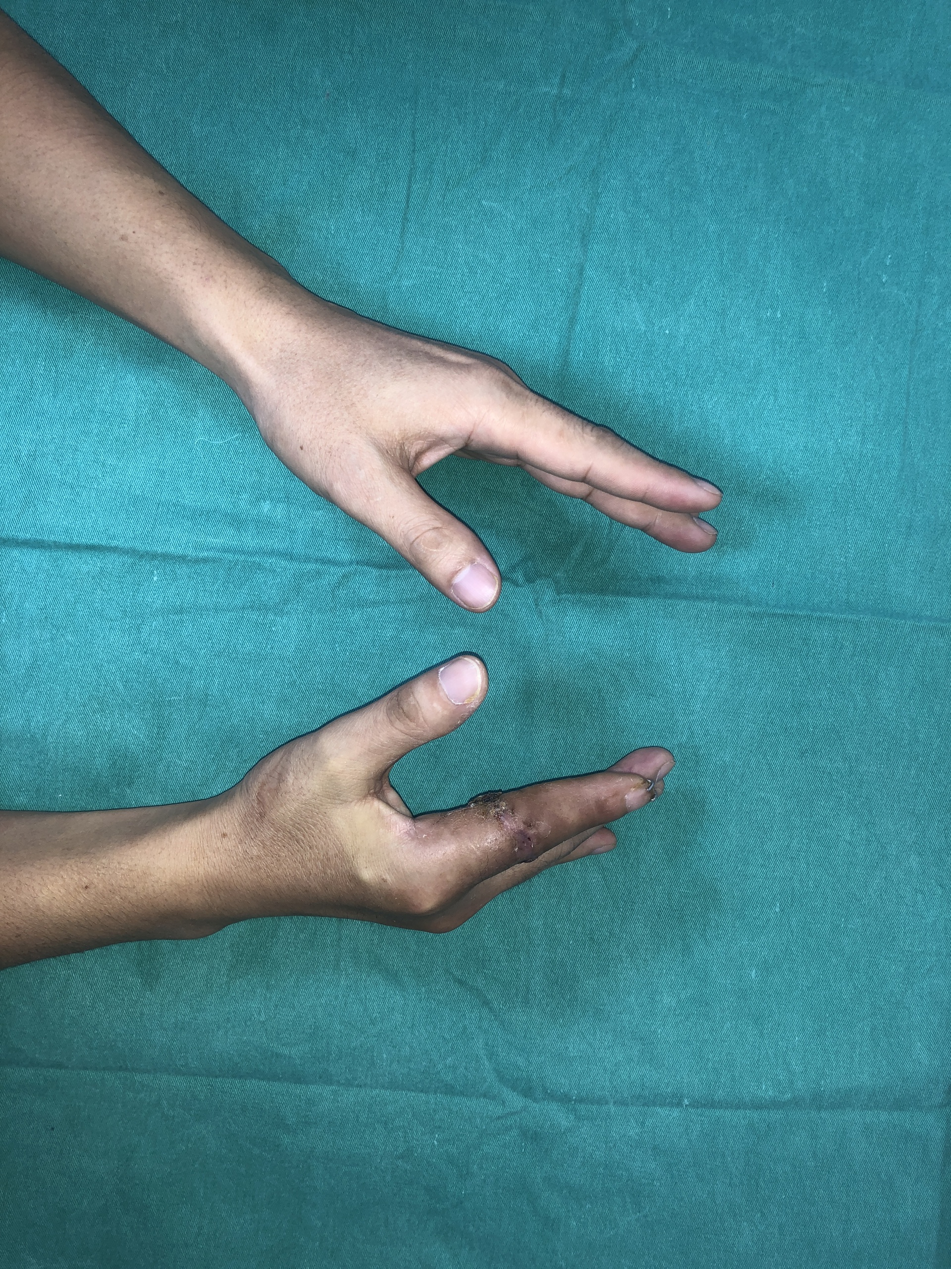 Sau phẫu thuật, vết thương của bệnh nhân đã liền, ngón tay hồng, sống hoàn toàn, người bệnh đã có thể cắt chỉ và rút kim cố định. Hiện, bệnh nhân đang được tập phục hồi chức năng để lấy lại khả năng vận động và cảm giác của ngón tay.