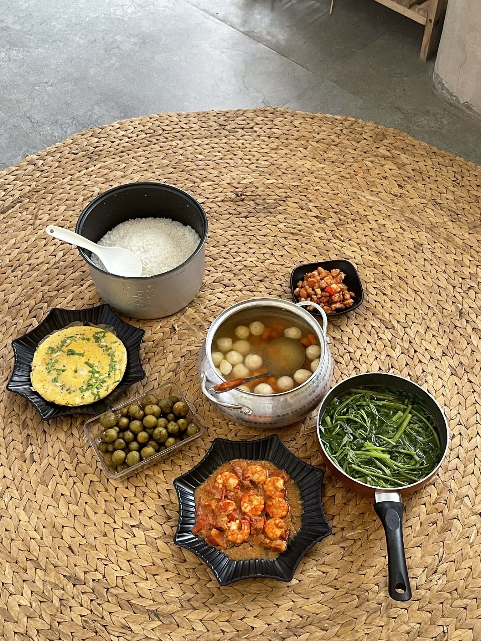 “Mình dậy sớm hơn để nấu ăn, sáng ăn trứng luộc, khoai luộc. Tự nấu rồi mà mỗi ngày vẫn tốn khoảng 100 nghìn vì giá thực phẩm giờ cũng cao ”, Linh nói.