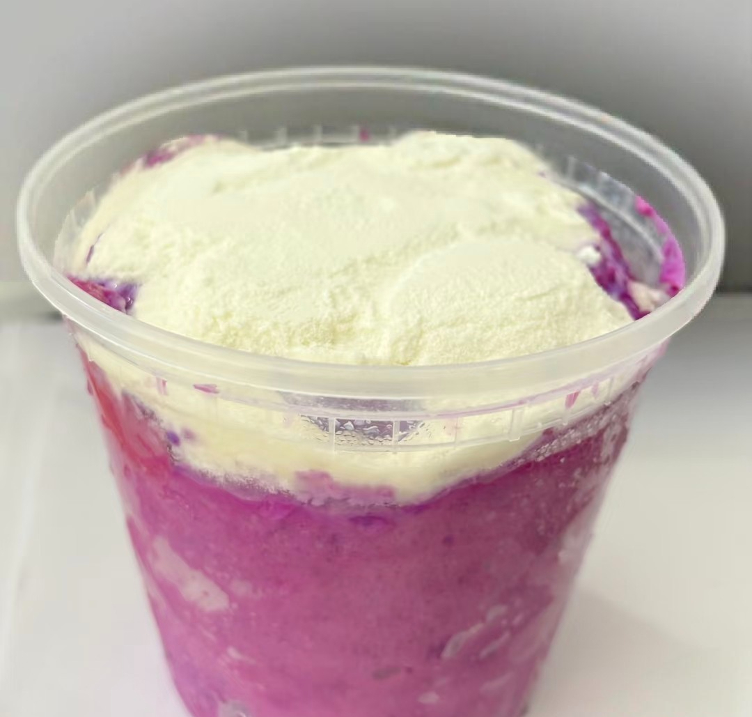 Bữa sáng nhanh gọn có thể chọn cốc sữa chua khoai tím. Phần khoai hấp chín đem nghiền nhuyễn, nếu đặc có thể thêm một ít sữa hoặc sữa tươi để dễ phết. Lót đáy ly một lớp khoai, tiếp đến là lớp sữa chua nguyên chất, trên cùng rắc yến mạch, hạt óc chó, hạnh nhân và vài miếng trái cây tươi. Múc một muỗng chạm cả ba tầng sẽ thấy khoai dẻo quyện sữa chua mát, thêm vị bùi của hạt rất vừa miệng.