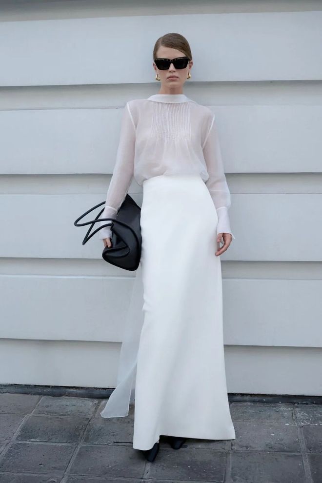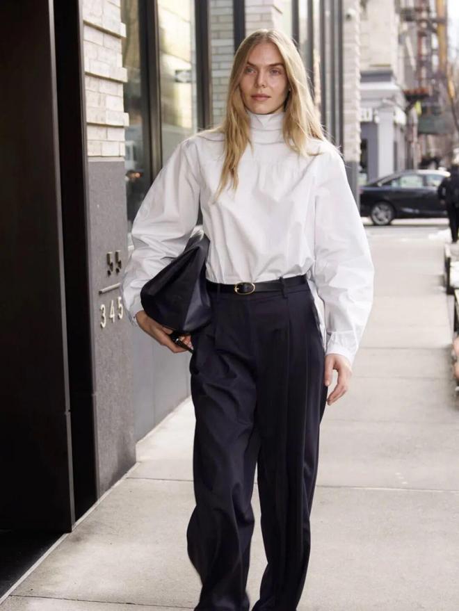 Không bó buộc trong một quy chuẩn nào, sơ mi ngược năm nay chiều lòng cả team thích mặc ôm sát tôn dáng lẫn hội chị em mê sự thùng thình, phóng khoáng. Với những quý cô công sở bận rộn, một chiếc sơ mi ngược phom ôm vừa vặn sơ vin cùng quần tây ống rộng cạp cao là công thức "hack dáng" bất bại.