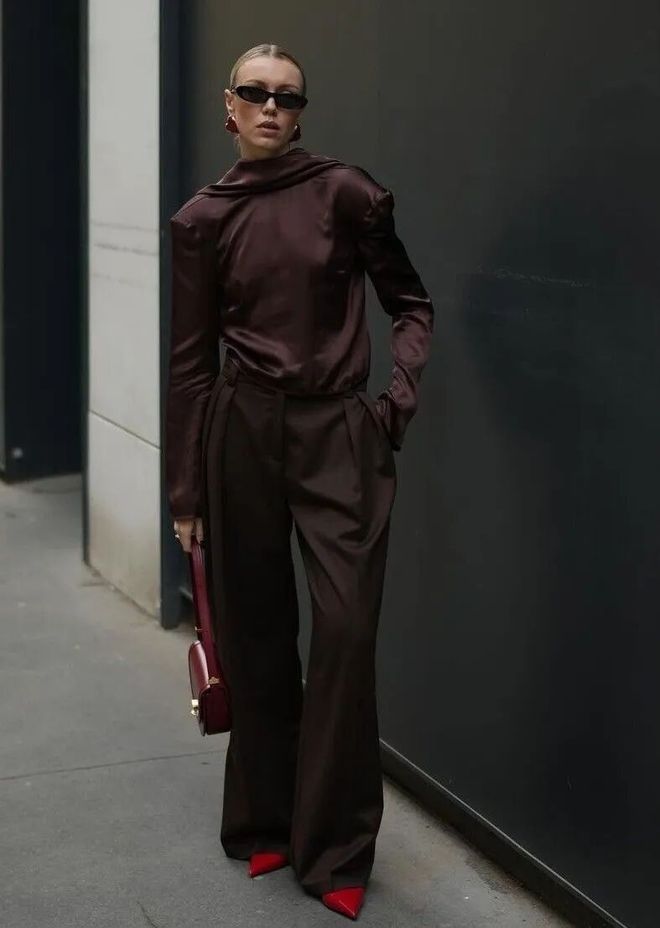 Sự xuyên thấu nhẹ nhàng của chất liệu này kết hợp cùng thiết kế vạt chéo hay cổ đổ sẽ tạo nên những khoảng hở lấp ló trên da thịt, mờ ảo và vô cùng quyến rũ. Trái lại, chất liệu lụa satin bóng bẩy lại mang đến một cảm giác mượt mà trơn trượt trên làn da. Khi diện sơ mi ngược bằng lụa, phần cổ áo ôm lấy thân hình rủ xuống tự nhiên như dòng nước, toát ra một thứ "sự sang trọng thầm lặng" (quiet luxury) không cần gắng gượng.