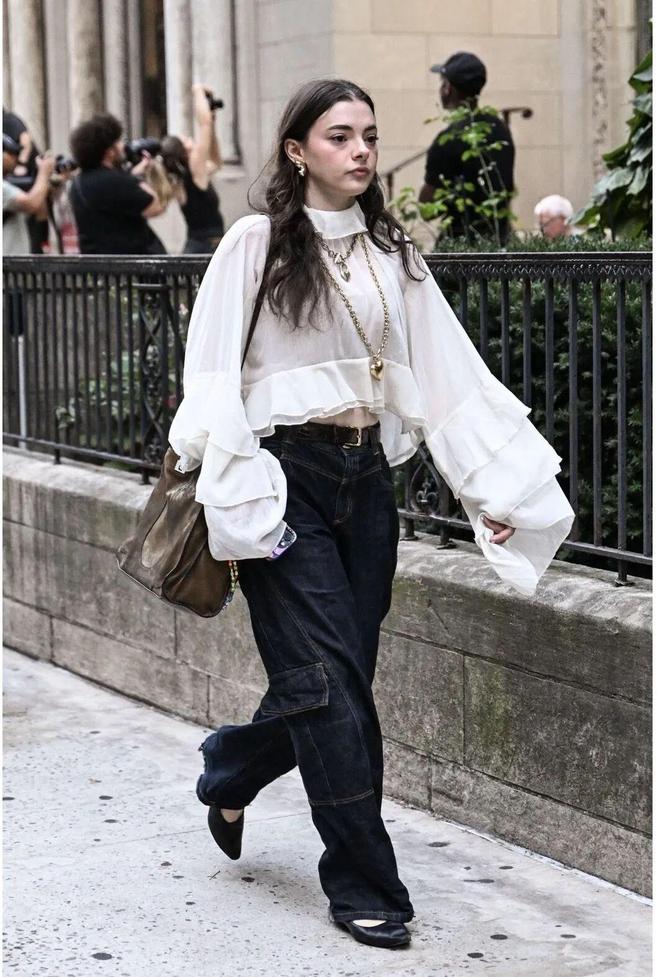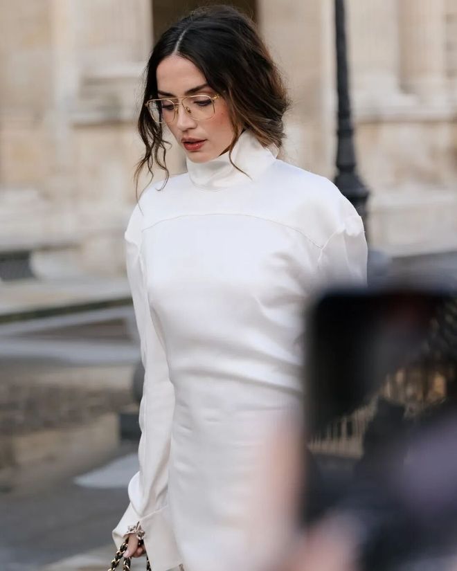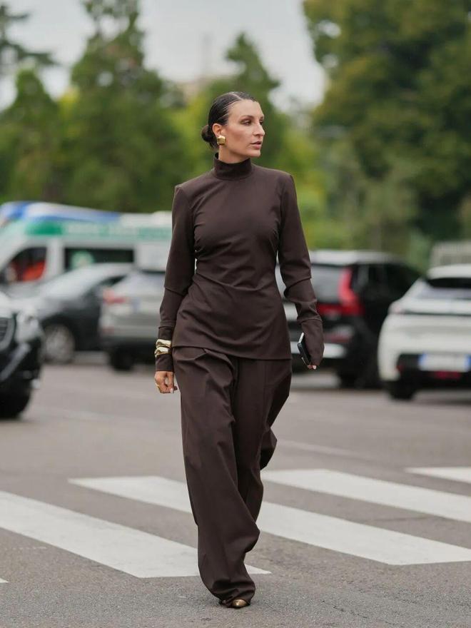 Bên cạnh đó, những đường may cầu vai vốn dĩ chỉ nằm thầm lặng ở sau lưng nay lại được phô diễn rõ nét trước ngực. Sự dịch chuyển thú vị này biến mặt phẳng của chiếc áo trở nên có không gian ba chiều. Nó không còn mềm oặt dính sát vào da thịt nữa, mà tạo ra một phom dáng cứng cáp, dựng nên một cấu trúc hình khối bao bọc lấy cơ thể, giúp phần thân trên của chị em trông vừa mềm mại nữ tính lại vừa có nét sắc sảo, độc lập của một quý cô hiện đại.