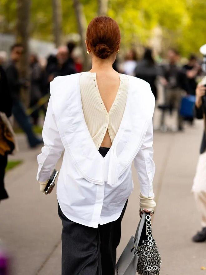 Mặt trước phẳng phiu nhường chỗ cho mặt sau là những lớp vải xếp nếp buông thõng. Mỗi khi bạn bước đi, lớp vải ấy khẽ đung đưa theo chiều gió, tạo nên một vẻ đẹp lãng mạn, phiêu bồng đến lạ thường. Và sẽ thật thiếu sót nếu không nhắc đến "phong cảnh" tuyệt đẹp phía sau lưng mà chiếc áo này mang lại. Những hàng cúc vốn quen nằm trước ngực nay chạy dọc theo sống lưng, tự thân chúng đã là một món trang sức điểm xuyết cho tấm lưng trần. Thậm chí, nhiều nhà mốt còn mạnh dạn khoét những khoảng hở tinh tế phía sau, để lộ bờ vai thon hay làn da lấp ló đầy rạo rực.