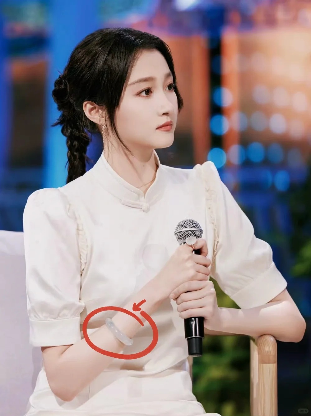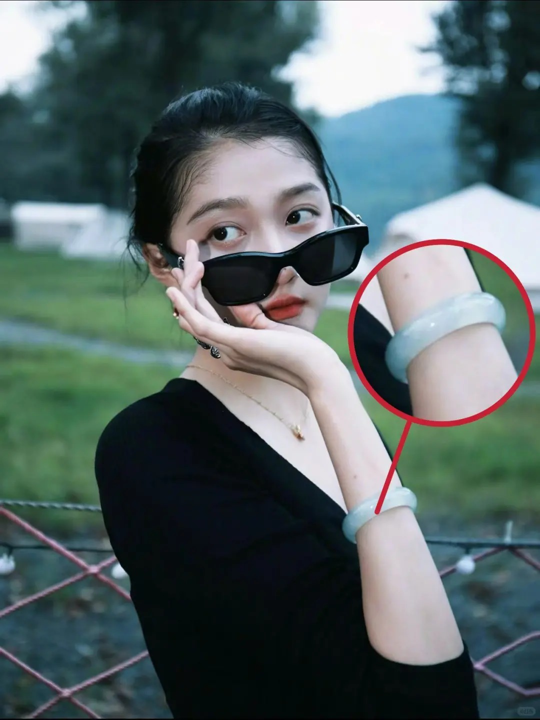 Có lúc, chiếc vòng toát lên vẻ trong veo, phát sáng như một thanh dạ quang rực rỡ, chứng minh đẳng cấp của dòng ngọc đắt đỏ bậc nhất. Thế nhưng, cũng có những khoảnh khắc, góc máy và điều kiện ánh sáng thiếu thốn lại biến món trang sức xa xỉ ấy trở nên xỉn màu, trông mộc mạc và giản dị như một chiếc vòng ngọc giá chỉ vài vạn tệ bình thường.