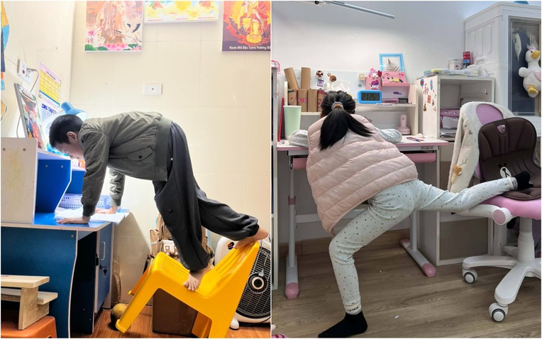 Chỉ có tư thế phụ huynh không nghĩ ra chứ không có tư thế nào là học sinh tiểu học không làm được.