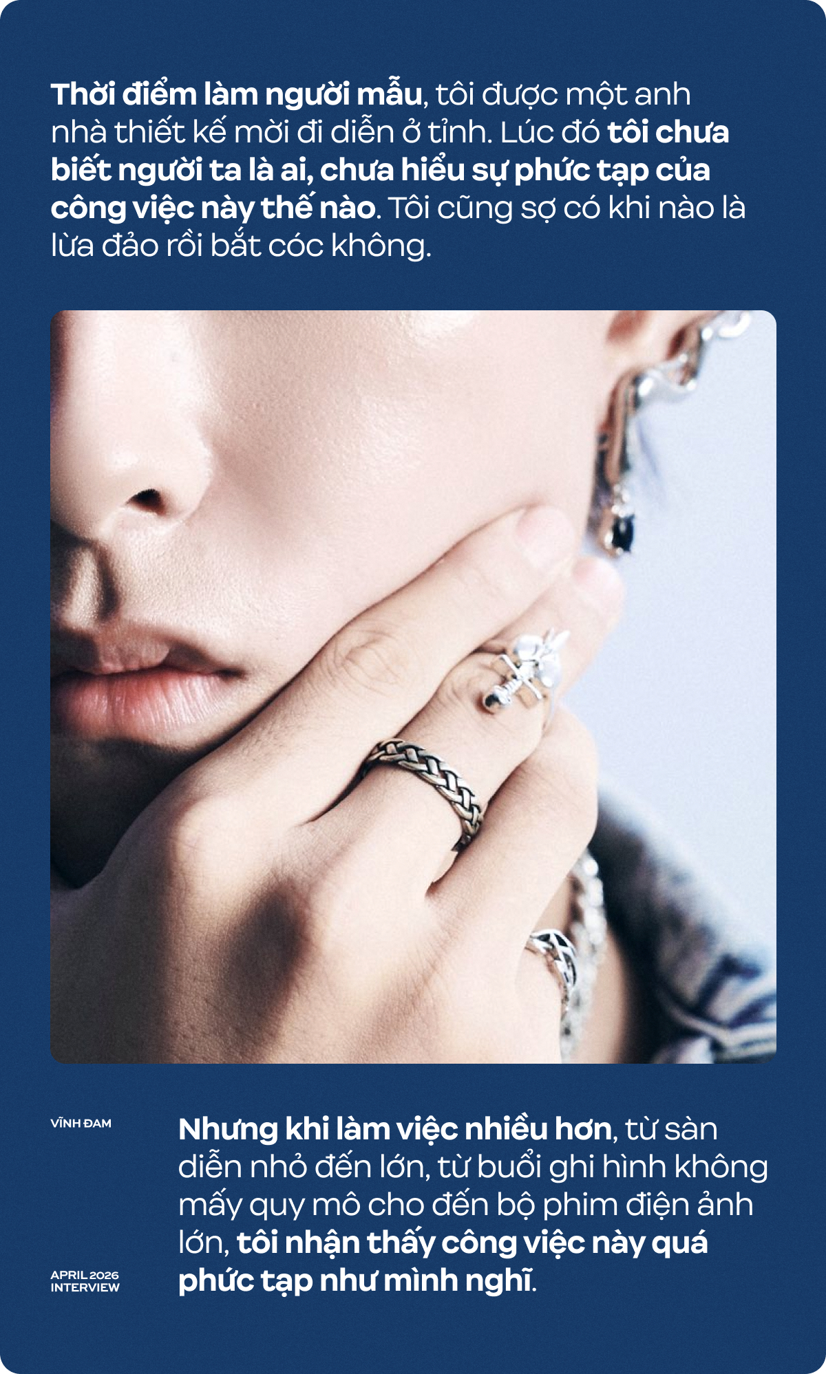 Vĩnh Đam là cái tên được nhắc đến khá nhiều trong thời gian gần đây, khi liên tiếp xuất hiện với vai trò nam chính trong hai dự án điện ảnh. Không đi theo lộ trình bài bản, không được định danh từ sớm bằng danh xưng diễn viên, mà Vĩnh Đam bước vào màn ảnh rộng bằng chính sự tự nhiên và bản năng của mình. Từ một người mẫu với lịch trình vừa đủ để cân bằng giữa học tập và công việc, Vĩnh Đam bất ngờ rẽ hướng, liên tiếp đảm nhận vai chính trong hai dự án phim điện ảnh chỉ trong thời gian ngắn.