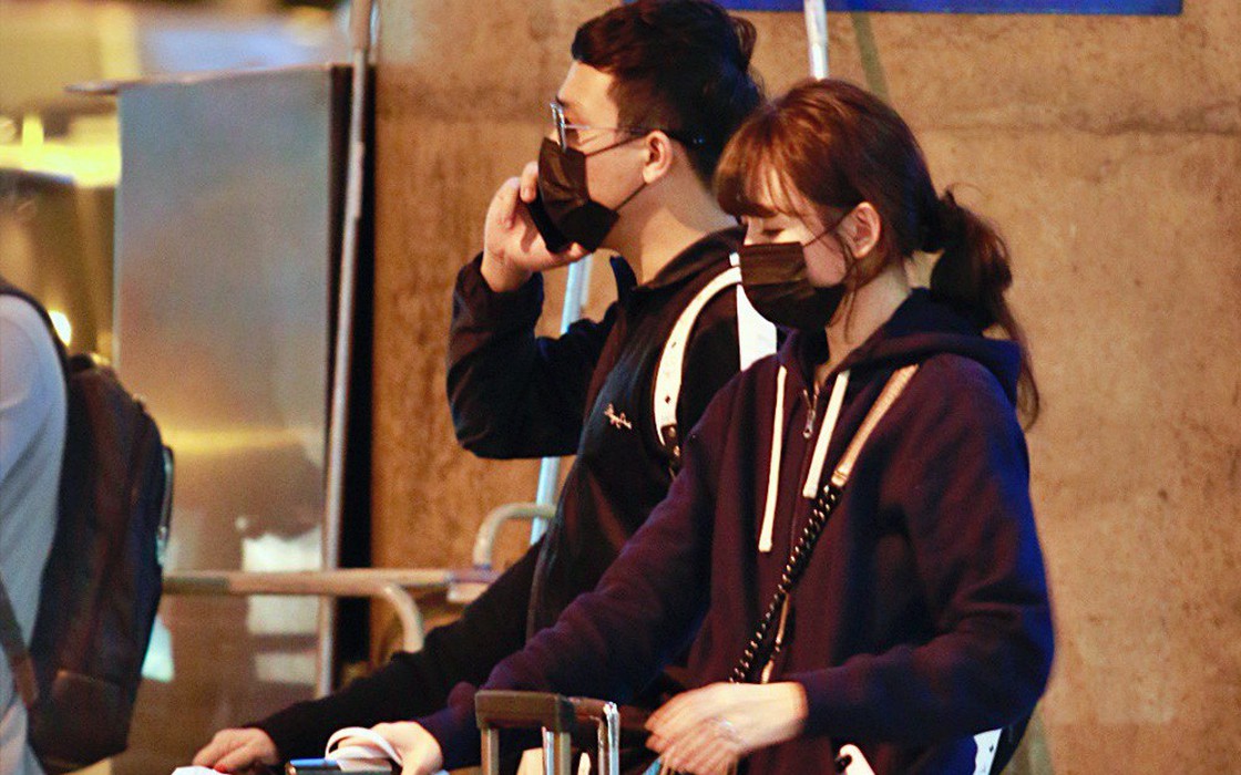 Vợ chồng Trấn Thành - Hari Won đeo khẩu trang kín mít xuất hiện tại sân bay lúc đêm muộn