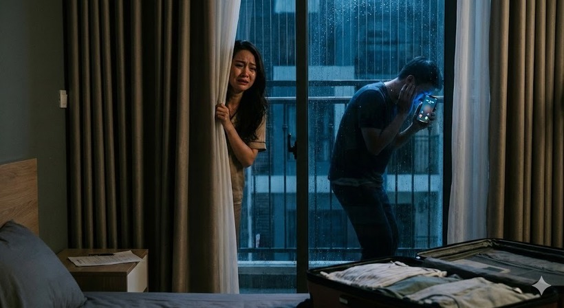 Hùng khẽ liếc mắt sang nhìn tôi. Thấy vợ vẫn đang nằm im lìm nhịp thở đều đặn, anh thở phào một cái rất nhẹ. Rồi anh rón rén hất tấm chăn mỏng, cầm chiếc điện thoại đi chân trần ra phía ban công, cẩn thận kéo khép cánh cửa kính lại để cách âm.