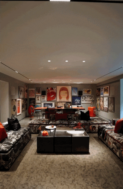 Không gian Đại Côn yêu thích nhất là phòng bếp khi ông có thể làm việc, vẽ hoặc tụ tập bạn bè tại đây. Tại tầng hầm, nhà thiết kế này trưng bày nhiều tranh, áp phích nghệ thuật. Đại Côn cho biết việc lựa chọn nội thất rất khó khăn với một gia đình có 2 nhà thiết kế, nên ông luôn chọn những món đồ đơn giản nhất hoặc đồ đặt làm riêng. Nhà thiết kế hào hứng khi khoe chiếc bàn cà phê làm bằng kỹ thuật ghép mộng đá có một không hai.