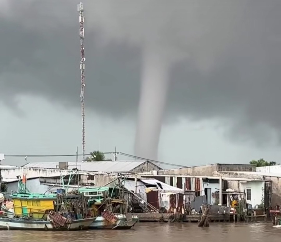 Vòi rồng cao hàng trăm mét xuất hiện gần cửa biển Cái Đôi Vàm (Cà Mau) vào chiều 13/11.