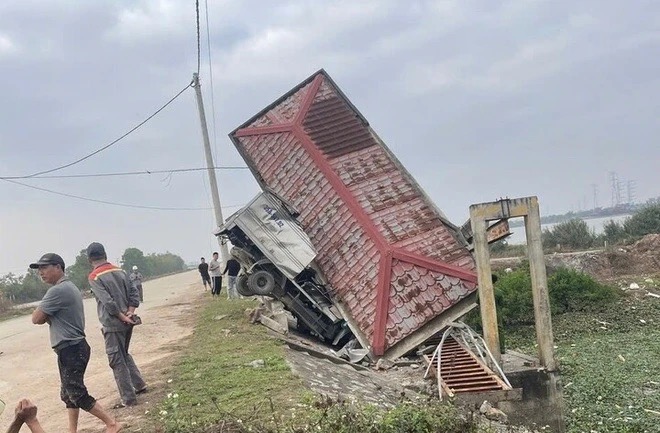 Vụ va chạm khiến xe ô tô tải do anh Y. điều khiển mất lái, sau đó tiếp tục va chạm vào cống thoát nước bên phải đường, khiến mái bên tông trên cống sập xuống, đè vào cabin.