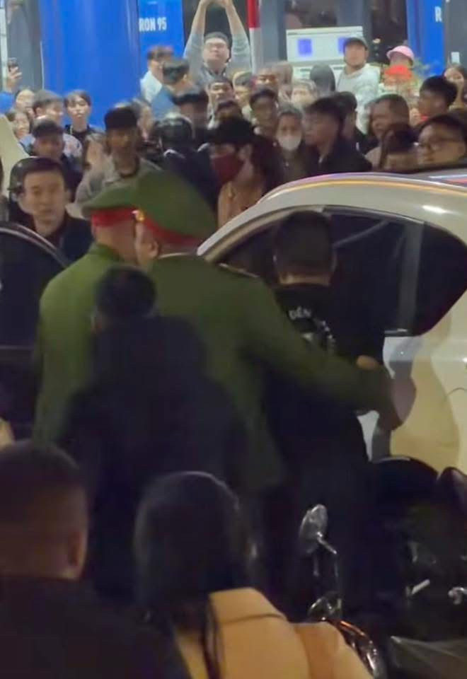 Tài xế cố thủ trên xe sau sự việc. Khi lực lượng chức năng có mặt và áp dụng biện pháp cần thiết, người này mới xuống xe.