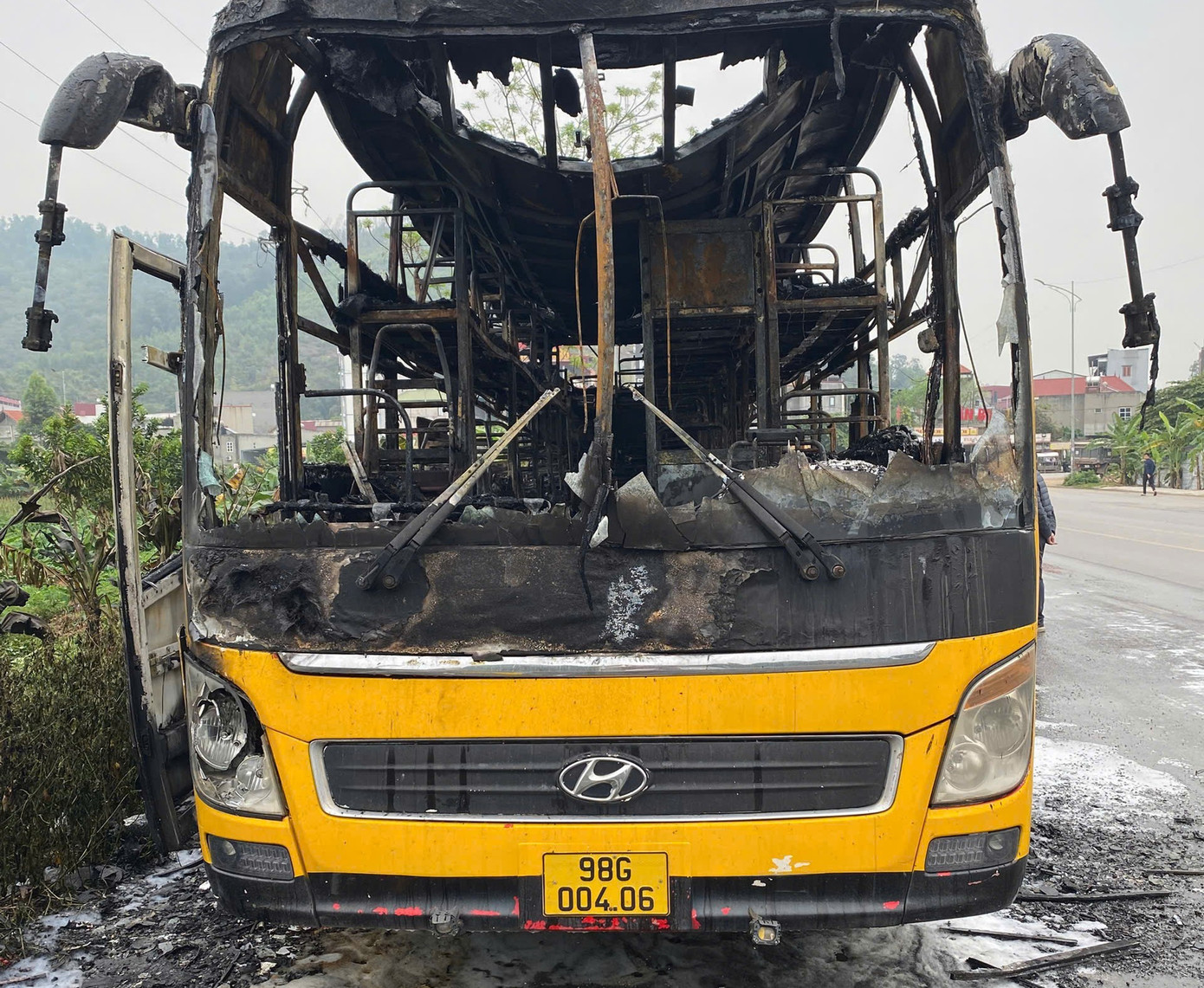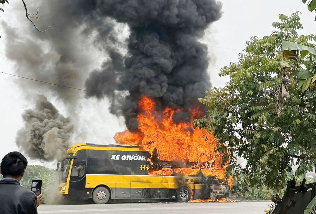 Một chiếc ô tô chở công nhân 40 chỗ bất ngờ bốc cháy dữ dội trên quốc lộ 37, đoạn gần cổng 1 Khu công nghiệp Vân Trung, phường Nếnh (tỉnh Bắc Ninh). Ngọn lửa nhanh chóng bao trùm toàn bộ phương tiện.