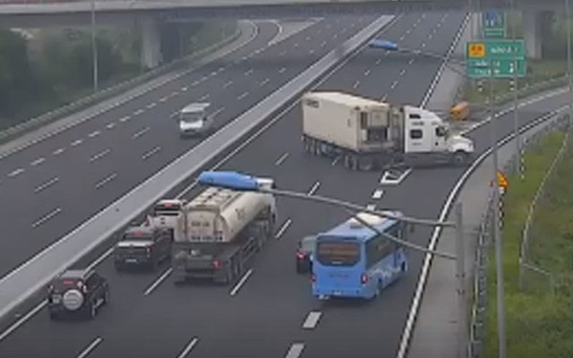 Xe container quay đầu, chạy ngược chiều trên cao tốc Hà Nội - Hải Phòng gây bức xúc