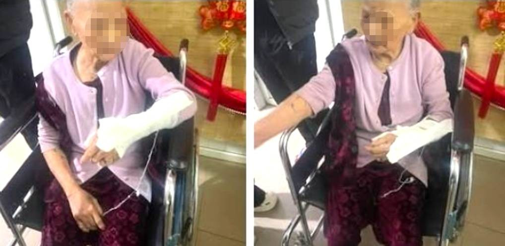 Sự việc khiến người mẹ bị gãy tay phải đến cơ sở y tế băng bó.