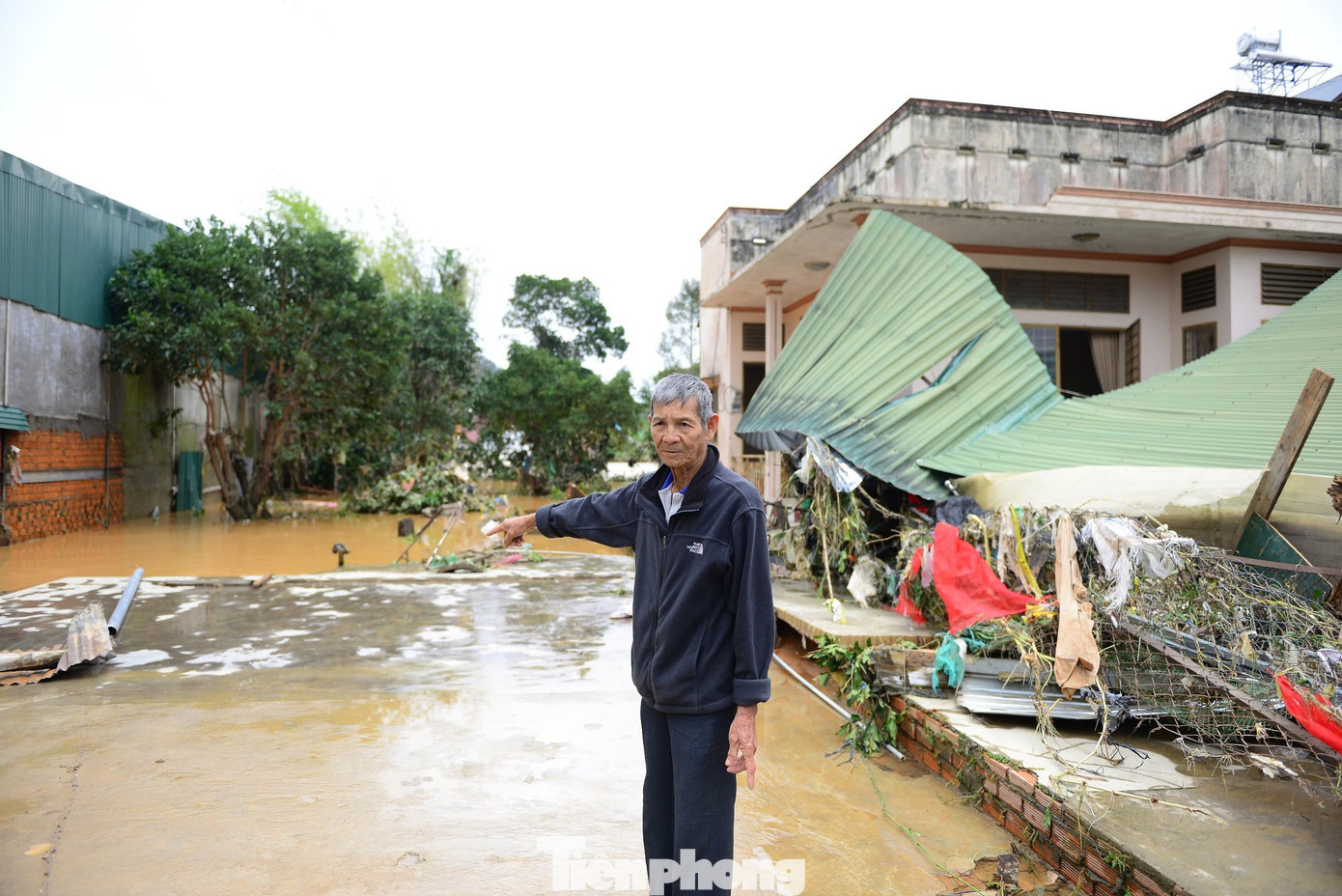 Trưa và chiều 20/11, khi trở về sau trận lũ, nhiều người dân xót xa nhìn mái nhà đổ sập, tài sản bị cuốn sạch, có nơi chỉ còn trơ lại nền nhà trống.